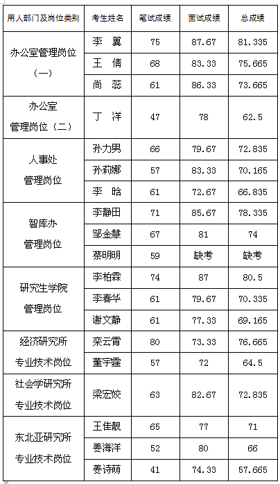 省社会科学院2020年公开招聘考试总成绩